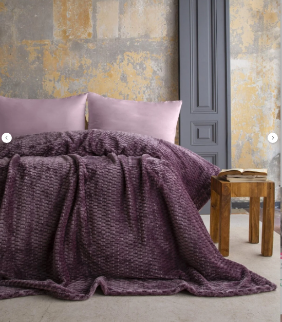 - Mürdüm rengiyle şıklığı ve zarafeti yatak odanıza taşıyan çift kişilik battaniye, 200x220 cm boyutlarıyla geniş bir kullanım alanı sunar.