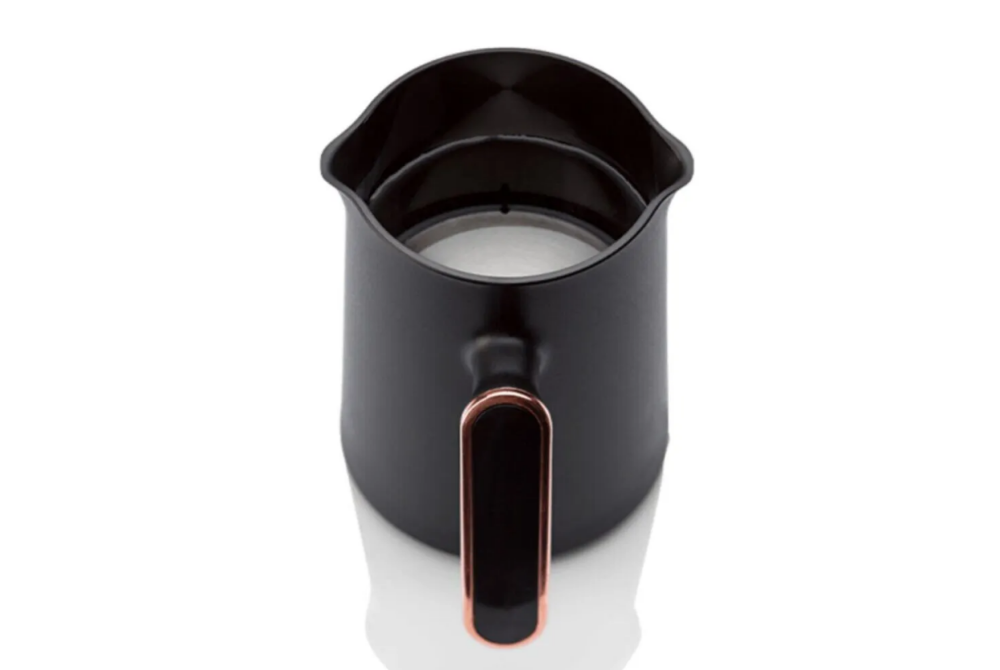 Modern tasarımı ve otomatik kullanım kolaylığı ile öne çıkan bu Türk kahvesi makinesi, 4 fincan kapasitesi sayesinde aynı anda birden fazla kişiye kahve hazırlama imkânı sunar. Çelik cezvesi ile dayanıklı ve hijyenik bir kullanım sağlarken, şık siyah tasarımı mutfaklara estetik bir görünüm kazandırır.