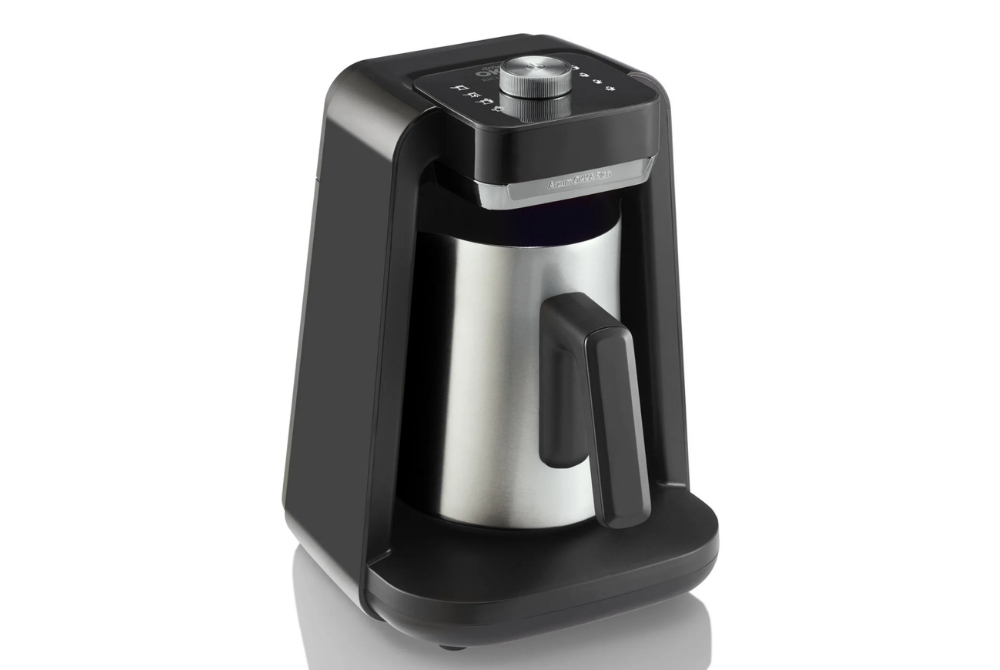 Modern tasarımı ve güçlü performansı ile öne çıkan bu Türk kahvesi makinesi, 5 fincan kapasitesi sayesinde aynı anda birden fazla kişiye kahve hazırlama imkânı sunar. Çelik cezvesi ile dayanıklı, hijyenik ve uzun ömürlü kullanım sağlarken, şık siyah tasarımı ile mutfaklara estetik bir görünüm kazandırır.