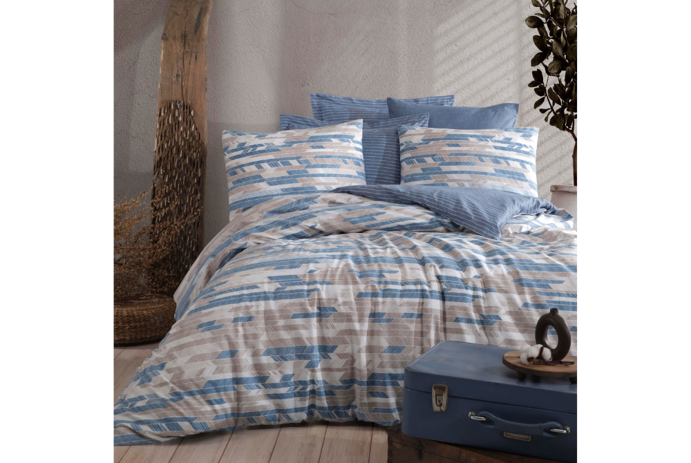 Bu nevresim takımı, %100 pamuk yapısı sayesinde yumuşak, nefes alabilen ve konforlu bir kullanım sunar. Desenli tasarımı ile yatak odanıza şık ve modern bir görünüm kazandırırken, günlük kullanım için ideal bir konfor sağlar.
