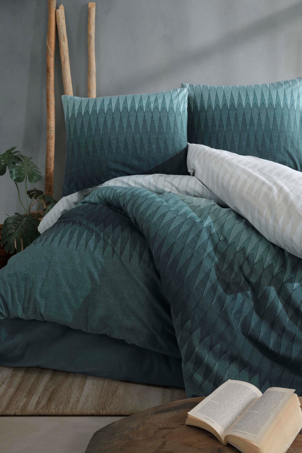 Kobyen Tina Nevresim Takımı Green Ç.K., doğal yeşil tonları ve zarif desenleriyle yatak odanıza taze ve ferah bir atmosfer katar. Çift kişilik ölçülerde üretilen bu takım; 200x220 cm nevresim, 230x260 cm çarşaf ve iki adet 50x70 cm yastık kılıfından oluşur. %100 pamuklu kumaşı sayesinde yumuşacık dokusu ile cildinize nazikçe temas eder, nefes alabilir yapısıyla dört mevsim ideal kullanım sağlar. Çift taraflı desen özelliği dekorasyonunuza farklı kombinler sunarken, lastiksiz düz çarşaf yapısı kullanım kolaylığı sağlar. Dayanıklı yapısı ve kaliteli işçiliği ile uzun süre şıklığını ve konforunu koruyan özel bir nevresim setidir.