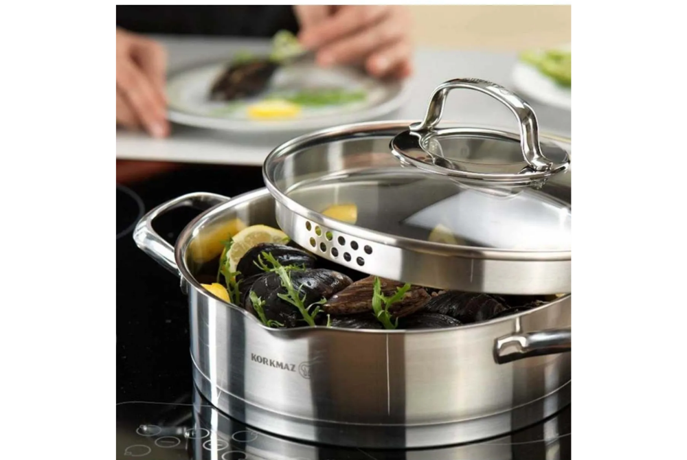 Kullanım: Endüstriyel kullanım için de uygundur; kapak üzerindeki süzgeç sayesinde tek tencerede haşlama ve süzme işlemi yapılabilir.