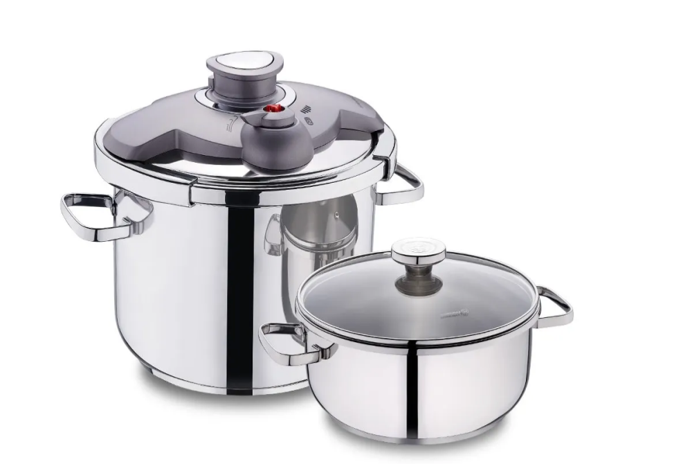 Set İçeriği: 4 Litre tencere, 6 Litre düdüklü tencere, ortak düdüklü kapak ve cam kapak