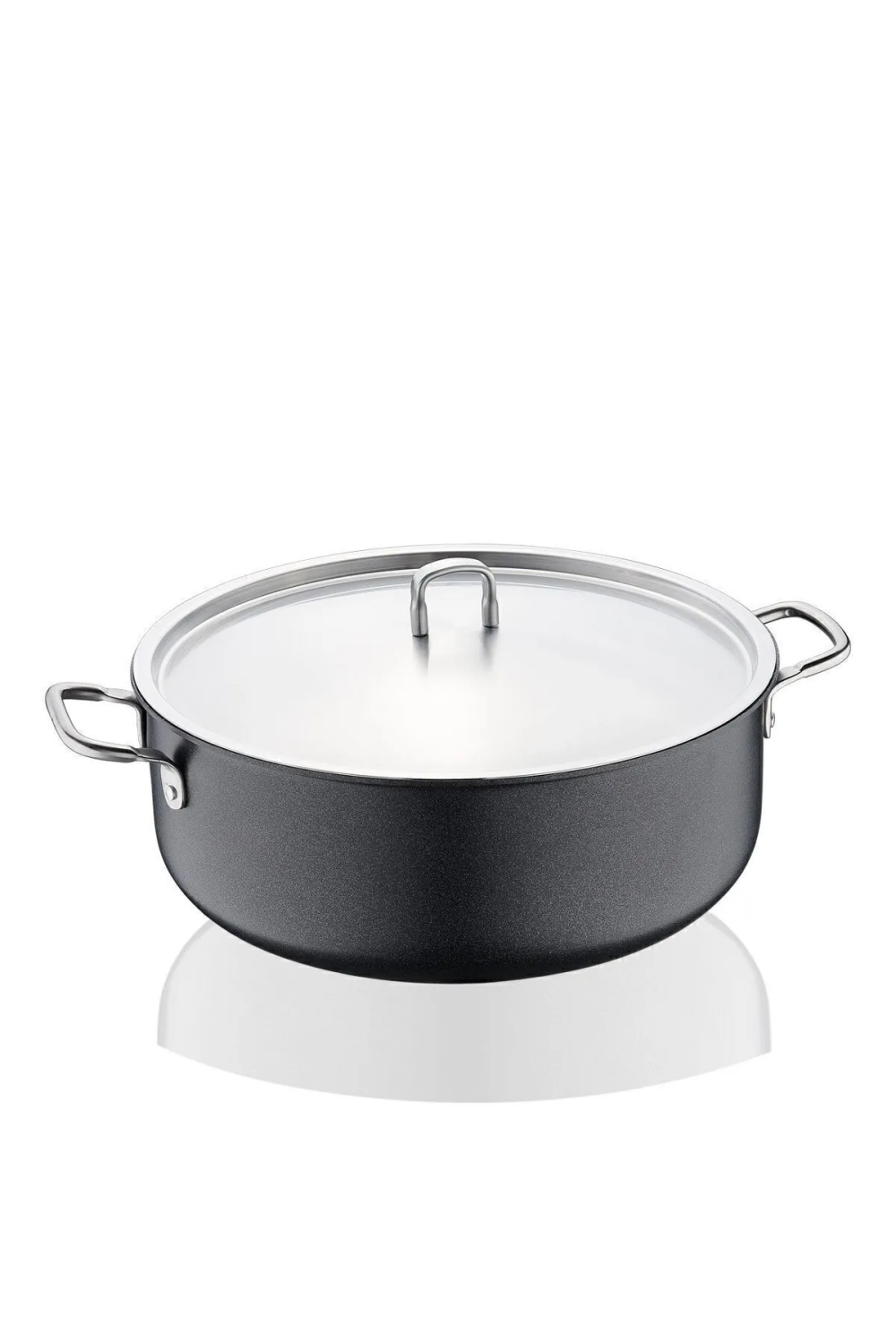 Korkmaz Doria serisinin 32 cm çapında ve 13 cm yüksekliğinde ekstra kısa tencere modeli
