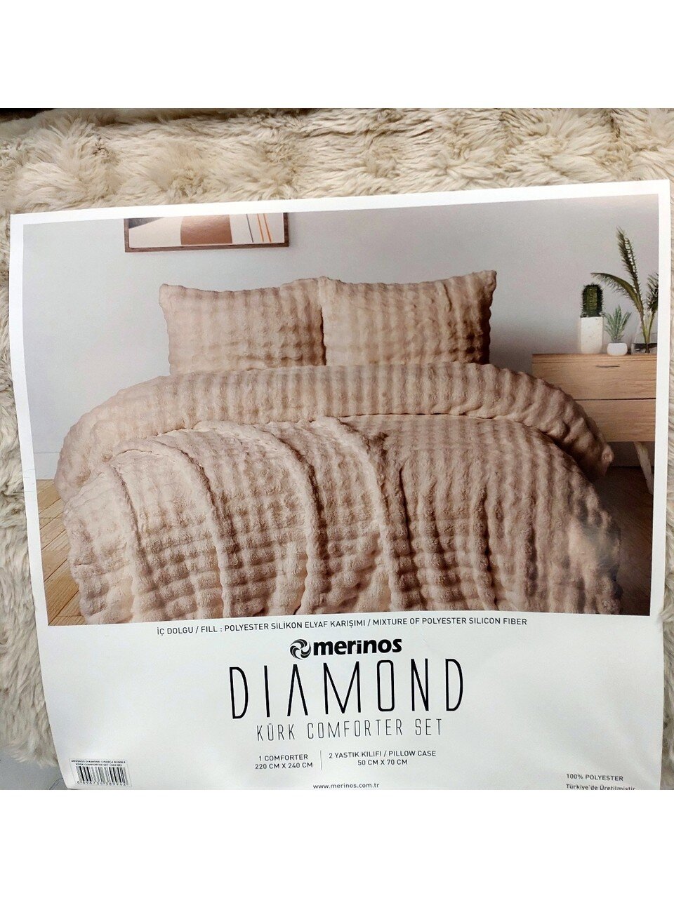 Merinos Diamond 3 Parça Kürk Comforter Set (Yorgan+Yastık Kılıfı)