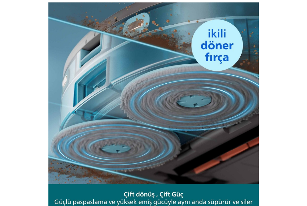 Philips HomeRun uygulaması üzerinden haritalama, oda bazlı temizlik planlama ve zamanlama ayarları kolayca yapılabilir. Saç dolanmasını önleyen özel fırça tasarımı sayesinde performansını uzun süre korur. HEPA filtre sistemi ile ince toz ve alerjenleri yakalayarak daha sağlıklı bir yaşam alanı oluşturur.