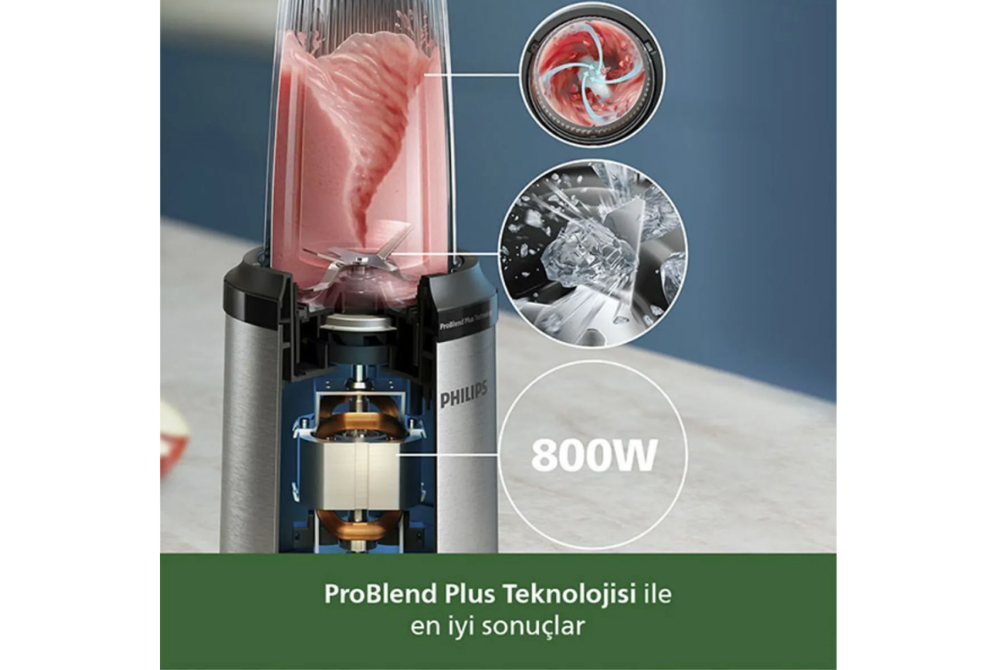 Hazne Kapasitesi: 500+ ml, günlük smoothie ve içecek hazırlıkları için uygundur.
