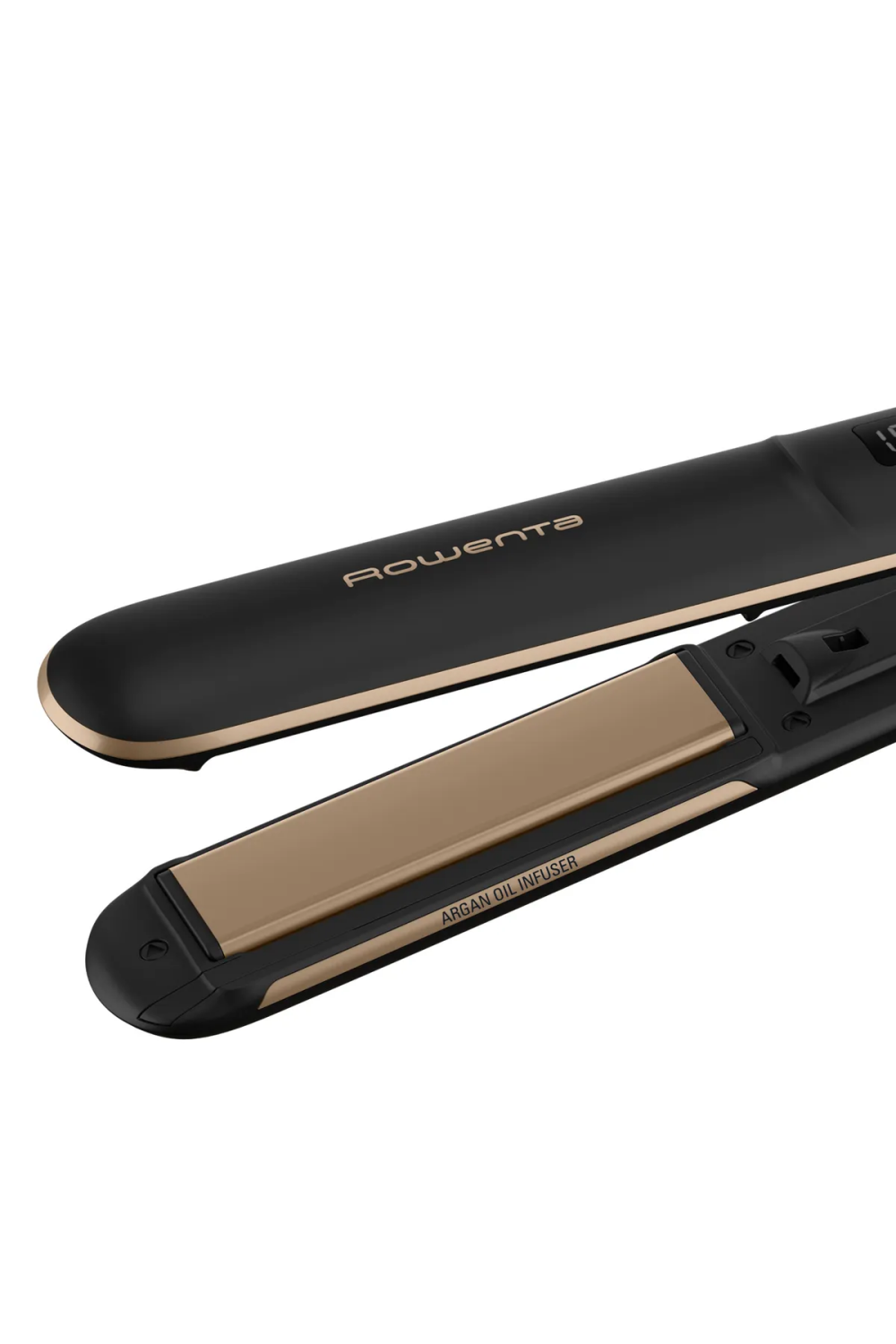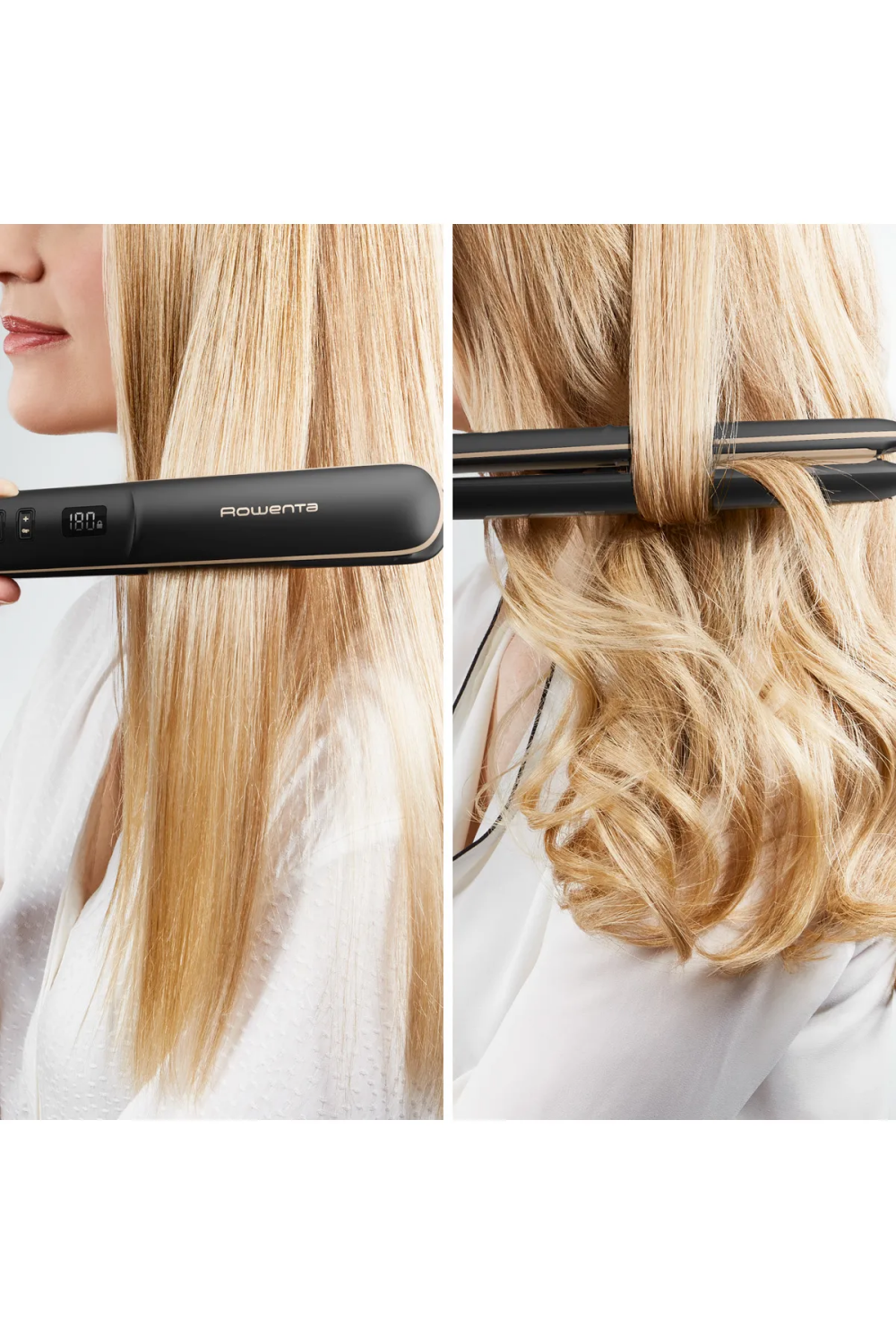 Rowenta Express Shine SF4630F0 saç düzleştirici, yerleşik argan yağı infüzörü ve seramik kaplamalı plakalarıyla saçlara ekstra parlaklık ve ipeksi bir dokunuş kazandırır. Statik elektriği azaltan iyonik teknoloji sayesinde saçlar daha kolay şekillenir ve elektriklenme önlenir. 8 farklı sıcaklık ayarı (140°C–210°C) ile her saç tipine uygun kişiselleştirilmiş kullanım sunar. 30 saniyede hızlı ısınma özelliği, sabahları zaman kazandırır. Hareketli plaka sistemi, saç telleriyle ideal temas sağlayarak tek geçişte etkili düzleştirme sağlar. 2’si 1 arada Liss & Curl sistemi ile düzleştirmenin yanı sıra bukle yapma imkanı da sunar. 360° dönebilen kablosu ve kilit sistemiyle hem kullanım hem saklama açısından oldukça pratiktir.