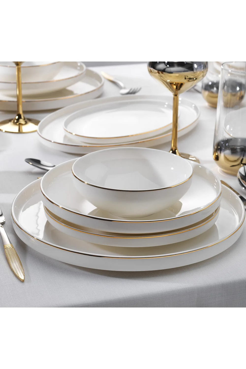 Renk/Tema: Altın detaylı sade beyaz tasarım