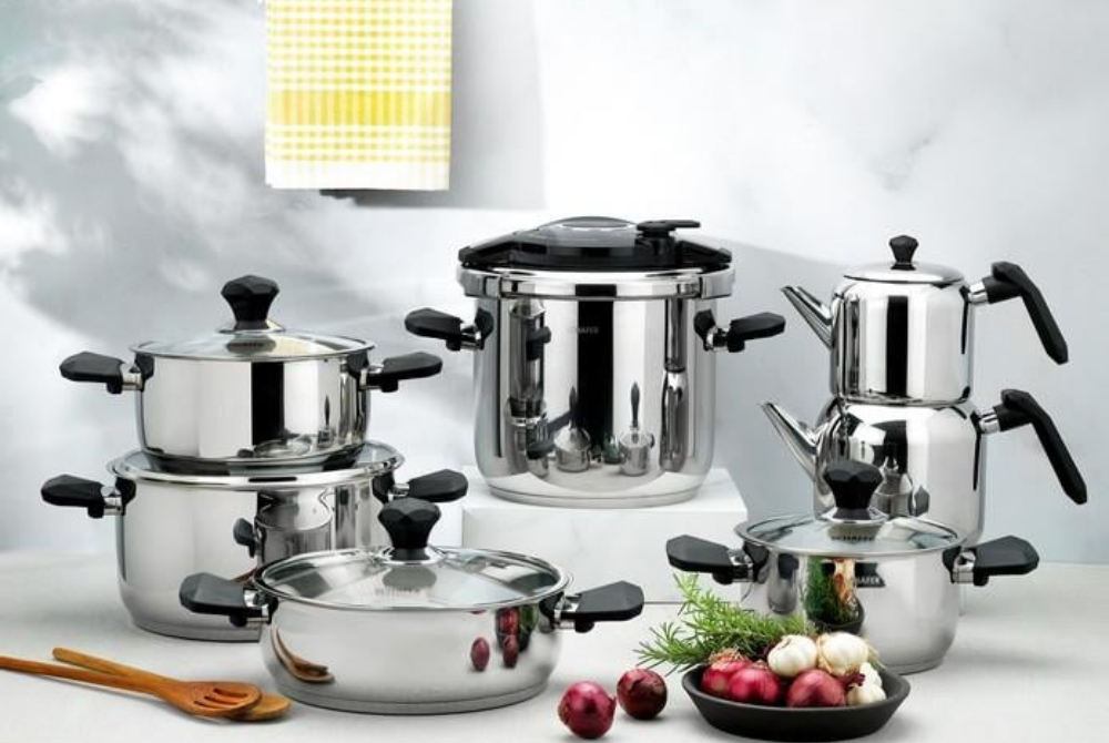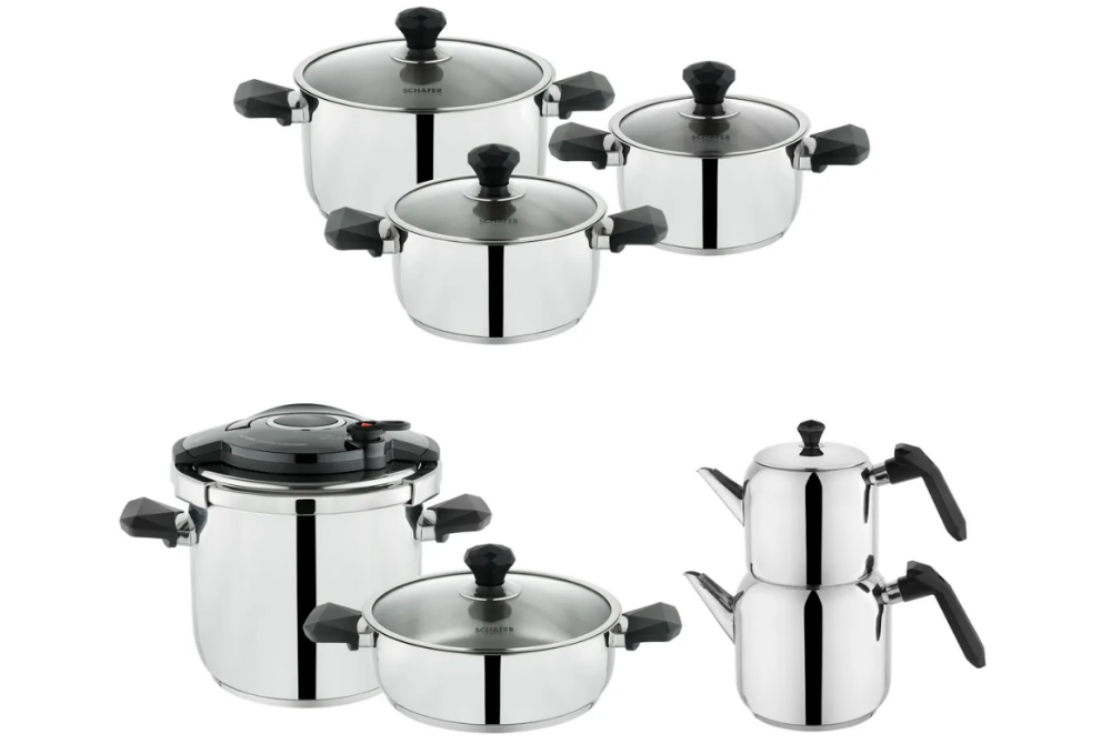 Modern mutfaklara şıklık ve fonksiyonellik katacak bu 14 parçalı çeyiz seti, yüksek kaliteli paslanmaz çelikten üretilmiş olup, zarif siyah detaylarıyla öne çıkıyor. Kapsül tabanları yemeklerin ısıyı eşit şekilde almasını sağlayarak ideal pişirme sunarken, ergonomik ve ısınmayan kulplar güvenli bir kullanım sağlar. Hem günlük hem de özel günler için mutfaktaki tüm ihtiyaçlarınızı tek pakette karşılar.