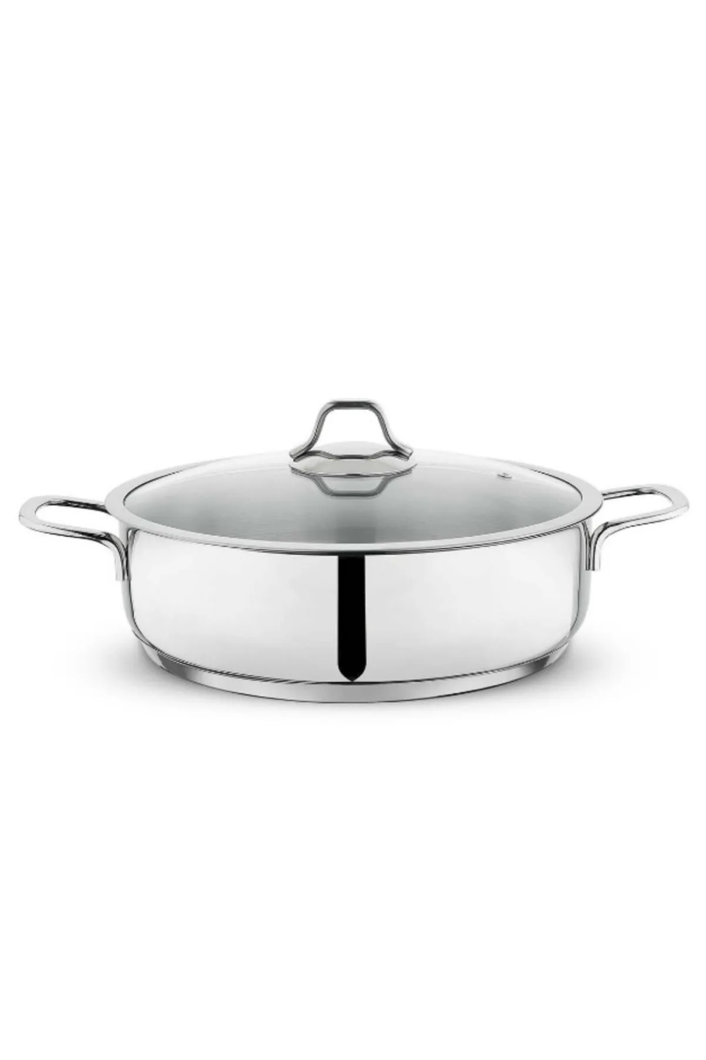 28 cm çapında, paslanmaz çelik (18/10 krom nikel) malzemeden üretilmiştir.