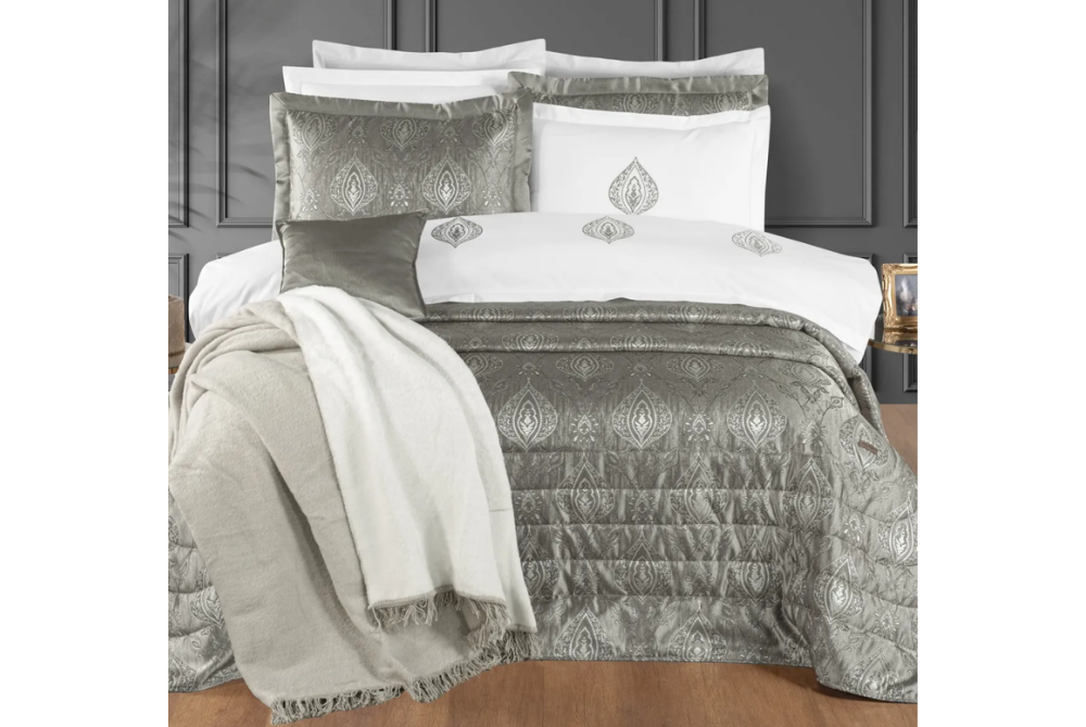 Çift kişilik yatak örtüsü: 260 x 270 cm – jakar kumaş, %100 polyester