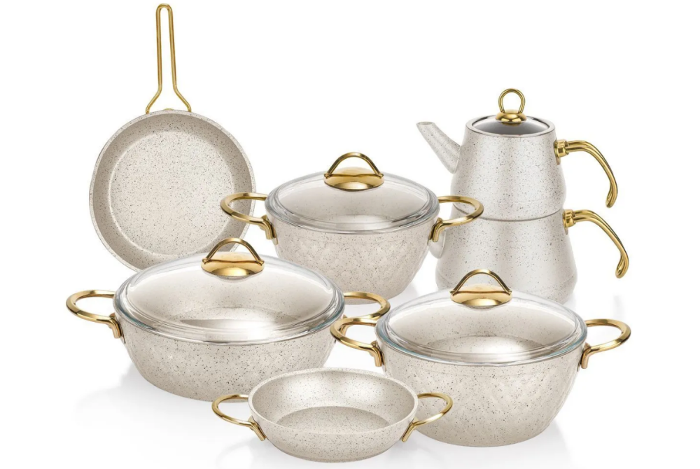 Malzeme: Alüminyum gövde, yanmaz yapışmaz granit kaplama – hafif, dayanıklı ve konforlu kullanım