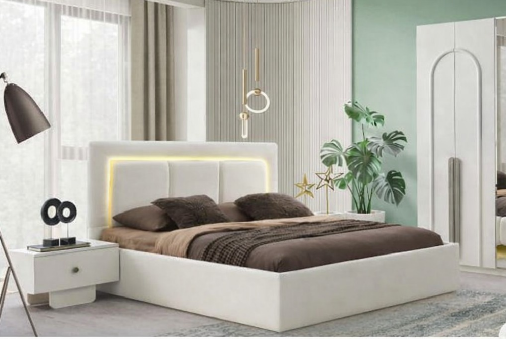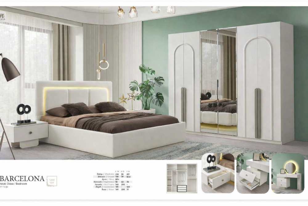 Takım içerik seçenekleri: Bazalı karyola (baza + başlık), gardırop, şifonyer (ayna dahil), komodinler