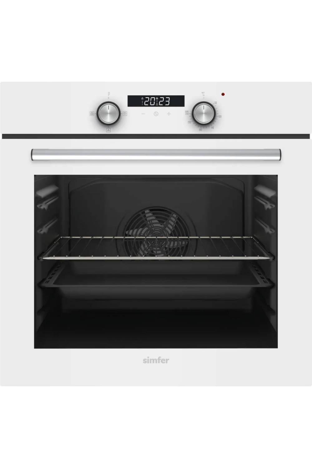 Simfer 8204 Diamond ankastre fırın, şık beyaz cam tasarımıyla modern mutfaklara uyum sağlar.