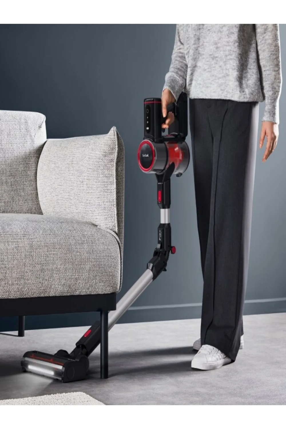 Tefal 2211401272 X-Force Flex 8.60 Max Aqua TY6T90TR, güçlü 22V bataryasıyla uzun süreli kablosuz temizlik sunar.