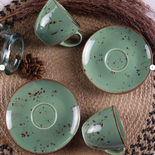 kahve! Eşsiz kokusuyla, özel lezzetiyle dünyanın en sevdiği içeceki! • Ürün : Porselen. • Parça Sayısı: 4 Parça. • Miktar: 2 kişilik. • Pürüzsüz yüzeyi sayesinde lekelenme yapmaz. • Teslimat süresi 3/5 iş günüdür. • Bulaşık makinesinde kullanılabilir. • Mikrodalga fırınlarda kullanıma uygundur. • Türkiye/Kütahya'da üretilmiştir. Temizlik ve Bakım • Sıvı deterjanlar kullanılabilir. • Yıkandıktan sonra bol su ile durulanmalı ve kurulanmalıdır. • Sert temizlik maddeleri veya tel ile ovularak temizlenmemelidir. • Çamaşır suyu gibi kimyasallar ile yıkanmamalıdır. • Porselenlerin süslemelerinde altın, platin ve yaldız kullanılan ürünlerin ise elde yıkanması tavsiye edilir. •Ürünlerin fırınların ısıtıcı bölümlerinde ve mikro dalga fırınlarda ısıtılmalarında bir sakınca yoktur. • Ürünlerin dekorunda altın, platin veya yaldız varsa mikrodalga fırınlarda kullanılmamalıdır. • Ürünler derin dondurucularda da kullanılabilir, ancak dondurucudan veya buzdolabından çıkan porselenin hemen fırına konması halinde ani ısı değişimi nedeni ile porselen kırılır. Takım Parçaları • 2 Adet 80 cc Kahve Fincanı • 2 Adet 12 cm Kahve Fincan Tabağı Tulu Porselen güvencesiyle güle güle kullanın.
